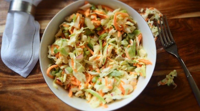 Préparer la sauce dans un saladier contenant un fond de mayonnaise, ajouter le lait, le vinaigre, le sucre et le sel, bien mélanger au fouet !