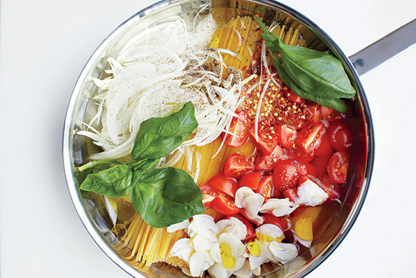 Le principe est enfantin : de l’eau, des pâtes, tous les ingrédients que vous voulez et le tout dans UN SEUL récipient !